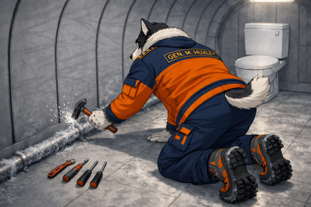 Huxley: I also have a sanitation system here that’s about to lose flow and freeze solid if this backs up again.