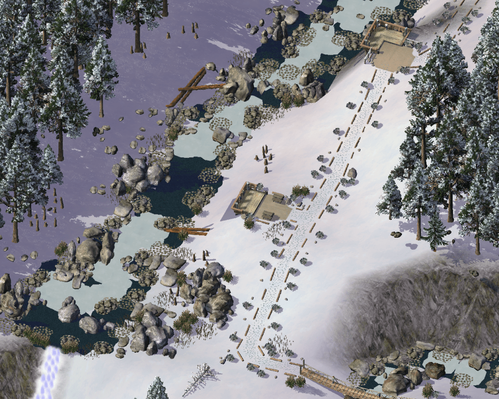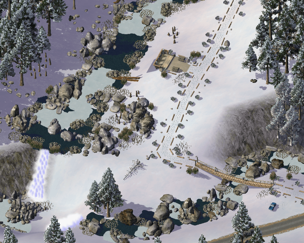 Altai pulled the pickup off the road and over onto the hard shoulder, the tyres making fresh tracks in the crisp snow, parking up at the start of the Big Creek trail. They crossed the sway bridge over Little Creek and followed the trail along to the first viewing platform looking out over Big Creek.