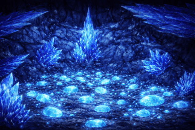 These same eggs, now transformed by the core energy of the planet, petrified into cyan stones.