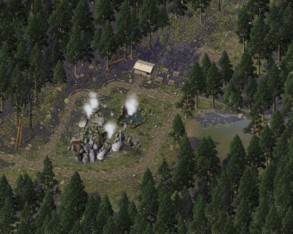 Jaak: C’mon guys, let’s get this load up to the fire circle then we can go up to the hot and cold springs for a swim before the gathering starts.