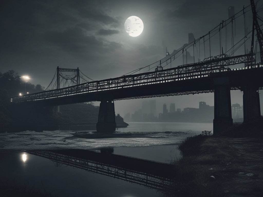 Reaching the far side of the road, they scrambled over a low nib wall, sliding the rest of the way down the sloping river wall, to the muddy narrow strip between the bottom of the wall and the river. They gathered themselves together and immediately started to make their way along the river edge. They passed a storm water outlet and judging by the smell emanating from it, they were not the only ones that had been tipping toilet waste down the storm water drains. Soon they saw the pile foundations of the rail bridge that crossed the river, where the others were waiting, deep in the shadows under the bridge.